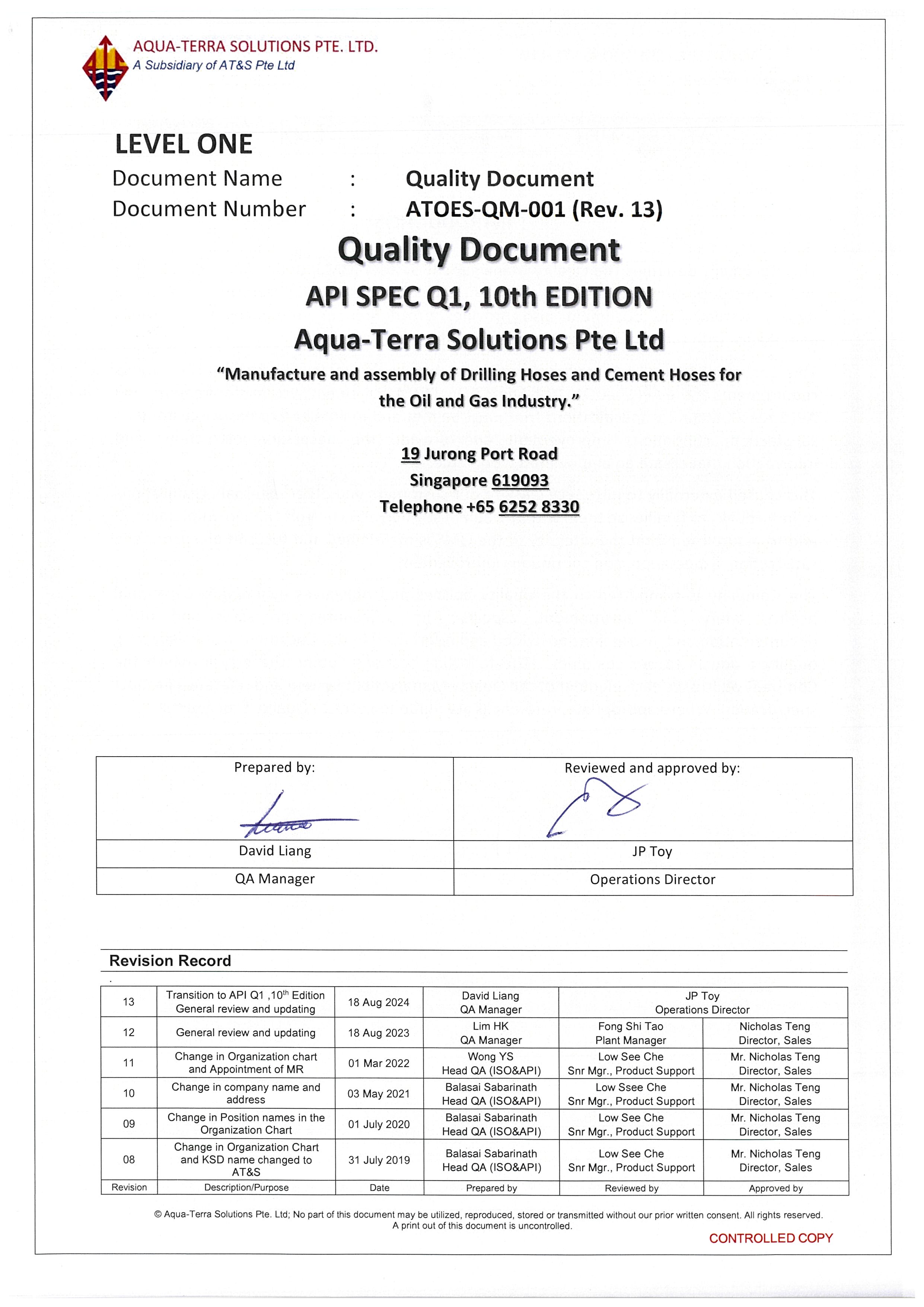 API Quality Document ATOES-QM-001 Quality Document Sequence & Interaction between Process and QMS_ATOES-QM-001 ATOES Org Chart Year 2024 ATOES-QM-001
