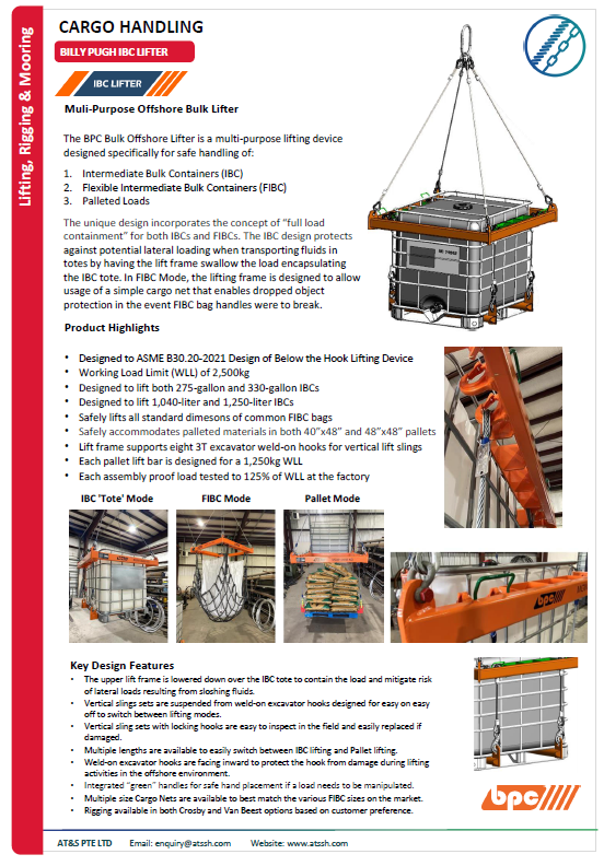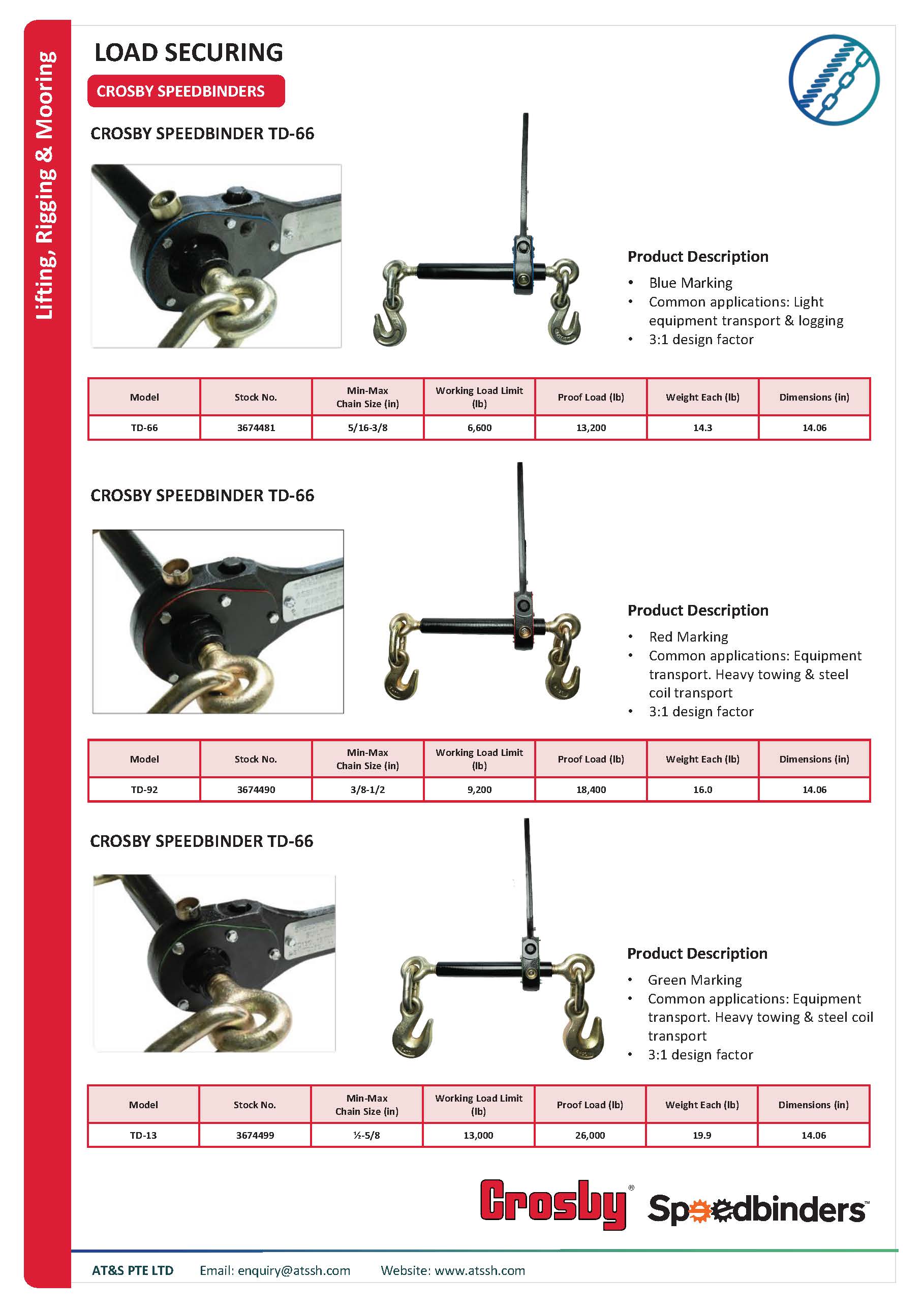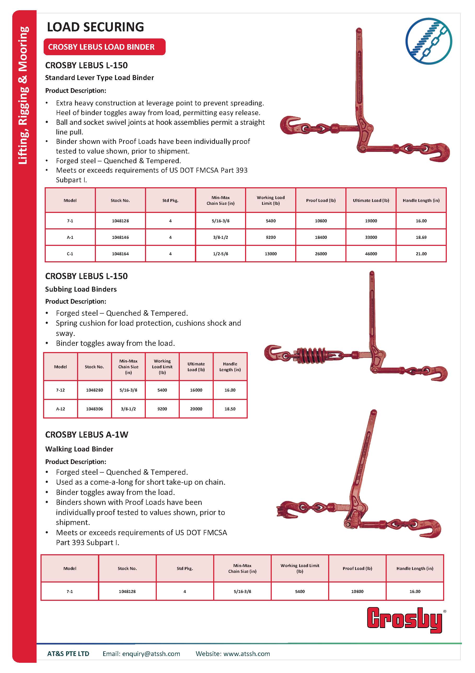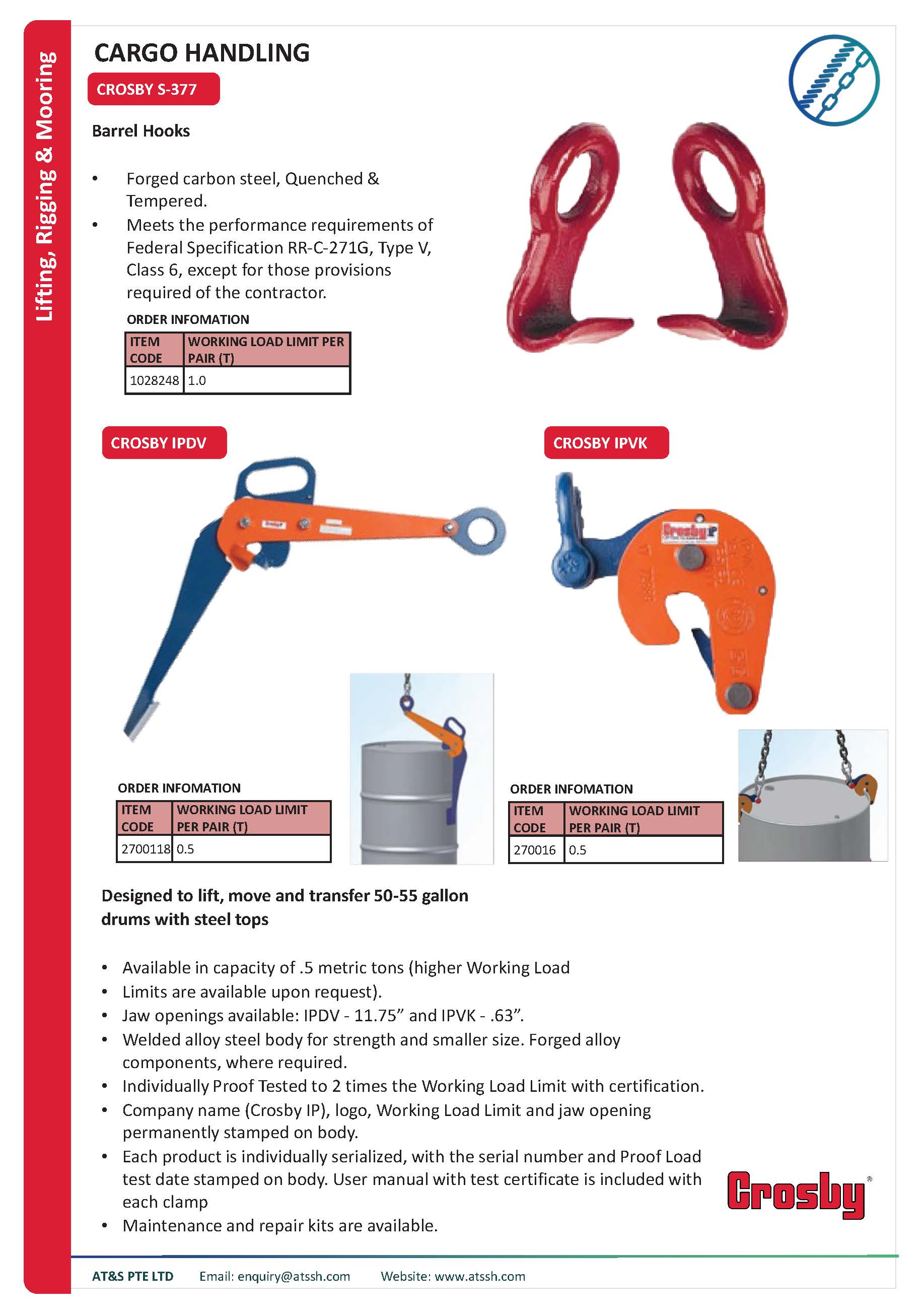 Wire Rope Crosby Hook & Swivel Crosby IPDV-IPVK S-377 Crosby Lebus Load Binder Crosby Sling Saver Crosby Speedbinders Crosby Wire Rope End Fittings TMC Slings Oceanflex-Oceantuff TMC Ratchet Strap Hi-Force Wire Rope Cutter Billy Pugh IBC Lifter Billy Pugh X-8CB Cargo Lifter ATS Drum Lifter ATS Push Pull Pole Lewis Snake Rope