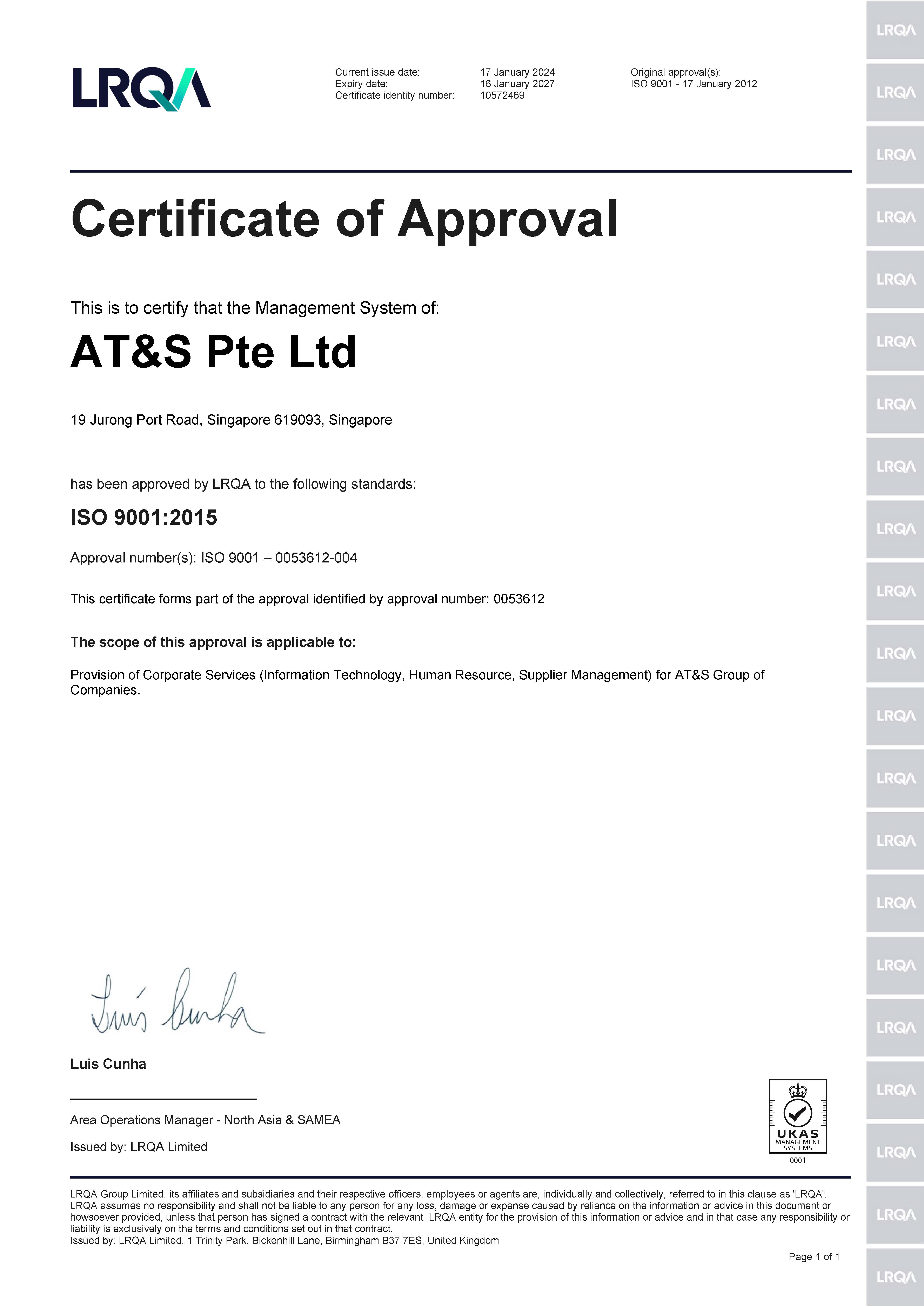 ISO 9001-2015 LRQA-UKAS – AT&S ISO 9001-2015 LRQA-UKAS – ATOES ISO 9001-2015 LRQA-UKAS – OOE ISO 9001-2015 LRQA-UKAS – KSFC ISO 9001-2015 LRQA-UKAS – RSHK ISO 9001-2015 EQA IMS – PT.ATOO ISO 9001-2015 EQA IMS – PT.SSHJ